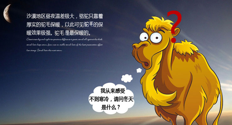 問:最近網(wǎng)上很多商家在賣駝絨被,都宣傳說保暖性極好并且是純天然制品,我十分心動(dòng),但不知道駝絨產(chǎn)品性能如何。我還聽說市場上駝絨產(chǎn)品的質(zhì)量良莠不齊,造假現(xiàn)象比較常見,不知有何方法可以直觀的辨別產(chǎn)品真?zhèn)危?/span>