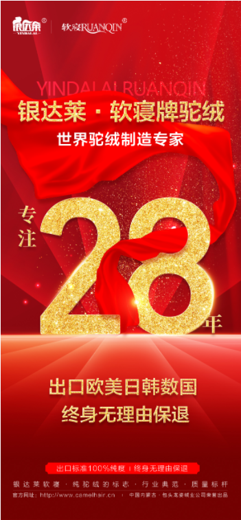 銀達萊·軟寢純駝絨,近三十年,上千噸駝絨出口到國外,國內(nèi)也銷售出去了千萬斤駝絨,被千千萬萬個家庭,做成了駝絨被褥、床墊,一直在用,但沒聽見有哪個顧客公開說自己用的啥,更沒見到有顧客發(fā)朋友圈分享宣揚一下。
